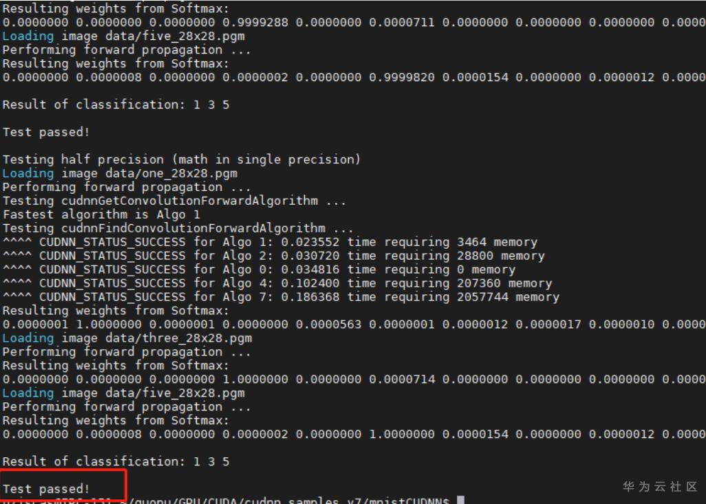 出现Test passed!没有报错即安装成功