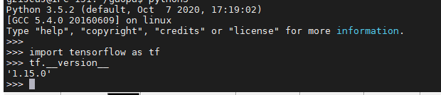 如果成功导入,返回 tensorflow的版本号,说明安装成功。