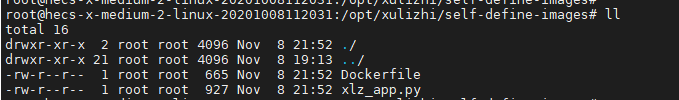 1.2)创建一个新的文件夹,将附件中的两个文件拷贝至该文件夹下,如下图所示,其中Dockerfile文件为我们这次自定义镜像的构建文件;xlz_app.py 文件为我们的应用服务代码,使用了 flask 框架。这两个文件中也有相关的注释,若有不理解的地方,可以在网上搜索 docker 和 flask 相关的资料学习。值得注意的是,modelarts 平台会将请求转发至自定义镜像起的服务的8080端口,故容器内的服务监听的端口必须是8080,如 xlz_app.py文件所示。