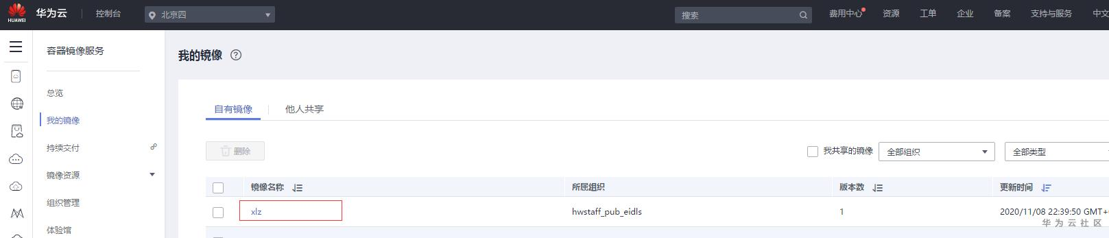 上传成功后能在SWR中看到刚刚上传的镜像,如下图所示: