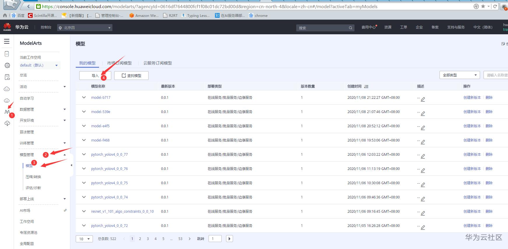 4.1) 进入华为云Modelarts页面,进入模型管理模块