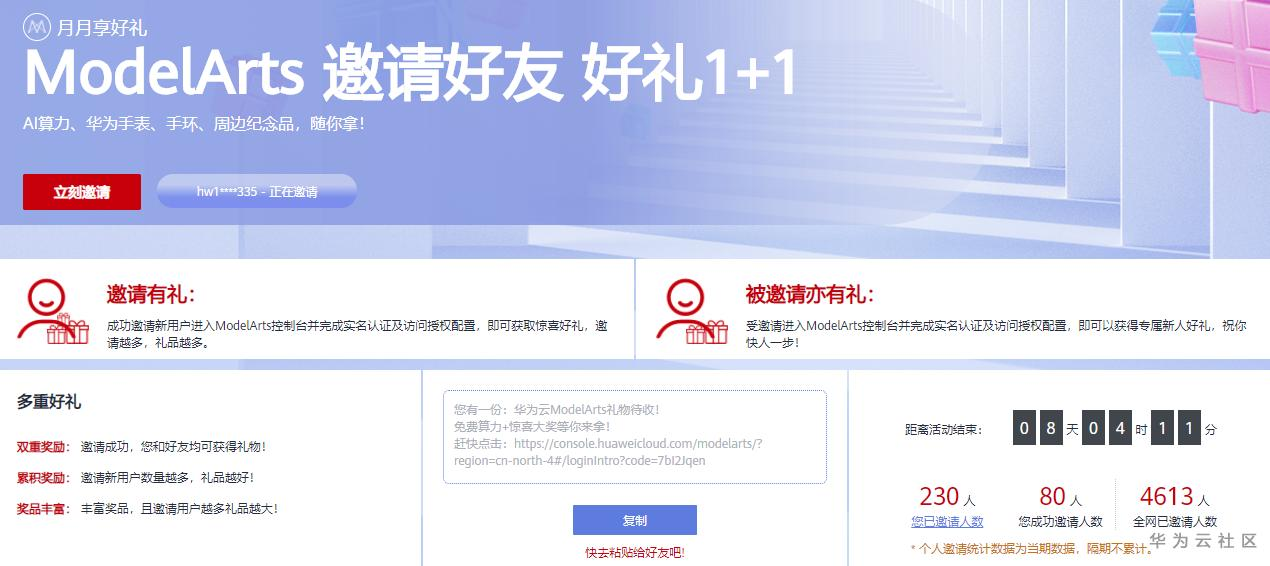 【ModelArts 邀请好友 好礼1+1】活动说明&攻略