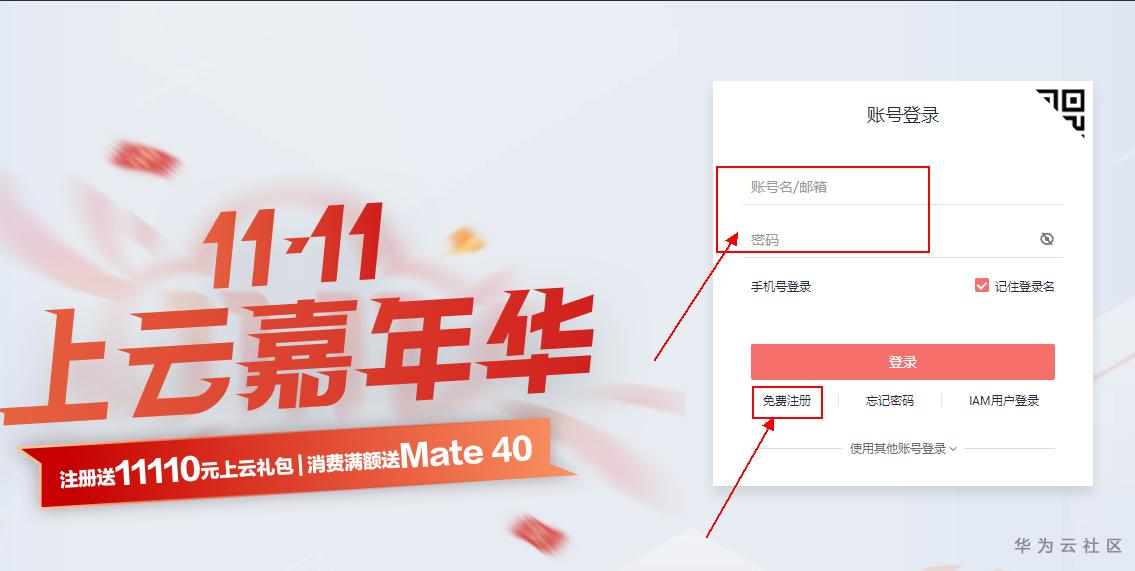 点击该链接,首先会跳转到华为云的登录界面,这里没有账号的可以直接注册,有账号的可以直接输入账号密码登录