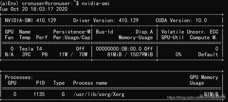 显卡信息:NVIDIA驱动:410.129(nvidia-smi )