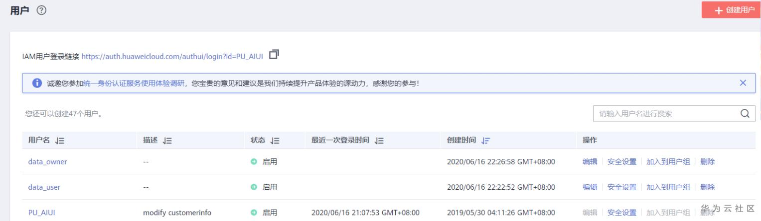 这样两个IAM用户就创建好啦,成功给予相应云服务的授权。
