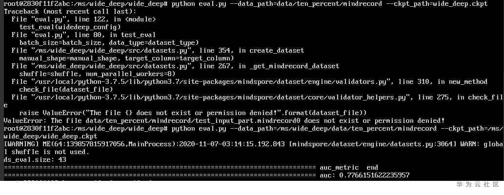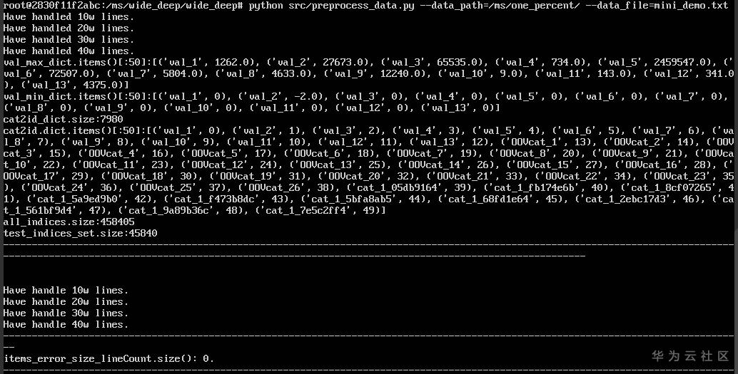 ①对下载的1%全量criteo数据集(mini_demo.txt)进行数据处理,生成mindrecord格式的数据集;