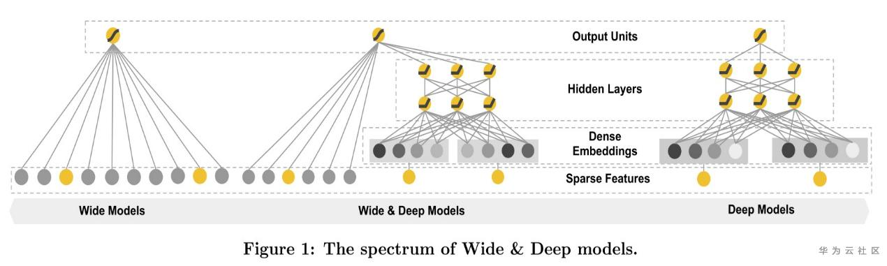 在目前大规模线上推荐排序系统中,通用的线性模型如LR被广泛应用。线性模型通常输入二进制的one-hot稀疏表示特征进行训练。比如特征“user_installed_app=netflix”为1,表示用户已安装netflix。交叉特征AND(user_installed_app=netflix,impresion_app=Pandora)表示既安装了netflix app同时又浏览过Pandora的用户特征为1,否则为0。wide模型可以通过利用交叉特征高效的实现记忆能力,达到准确推荐的目的。wide模型通过加入一些宽泛类特征实现一定的泛化能力。但是受限与训练数据,wide模型无法实现训练数据中未曾出现过的泛化。