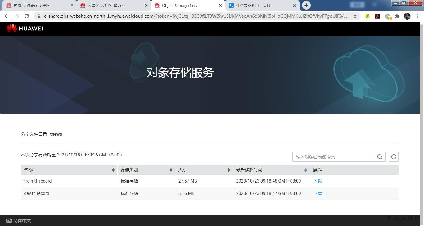 https://bert-21days.obs.myhuaweicloud.com:443/bert/bert_base.ckpt?AccessKeyId=M7KX8KLMT0ZL1P8QWXZ5&Expires=1635991421&Signature=cruWVmPy68Fz%2Bfr90Do5sS1WN0E%3D