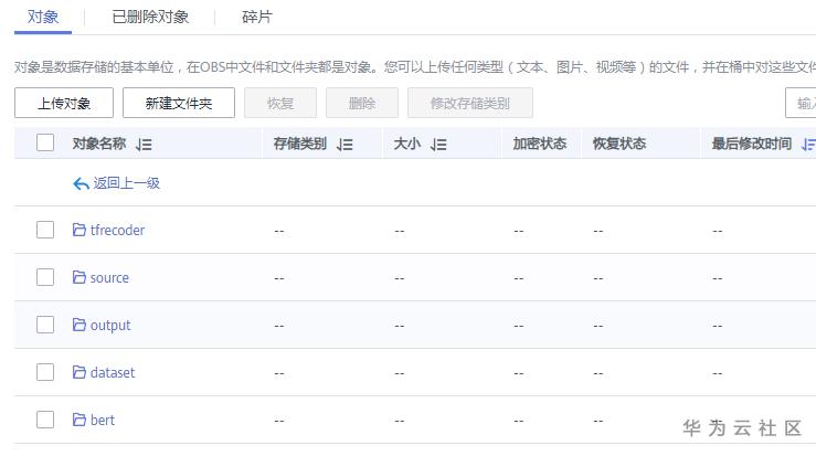 4. 上传bert_base ckpt文件、tnews数据集和源代码到obs桶
