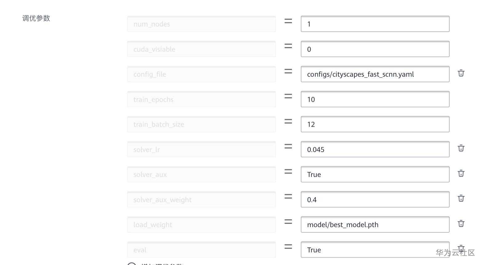 参考本文第2节中的步骤,创建“训练作业”,按照下表设置训练参数: