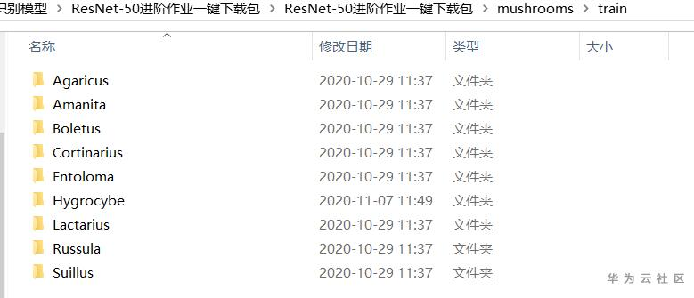 打开mushrooms/train文件夹,下面存放了毒蘑菇图片的9个分类。