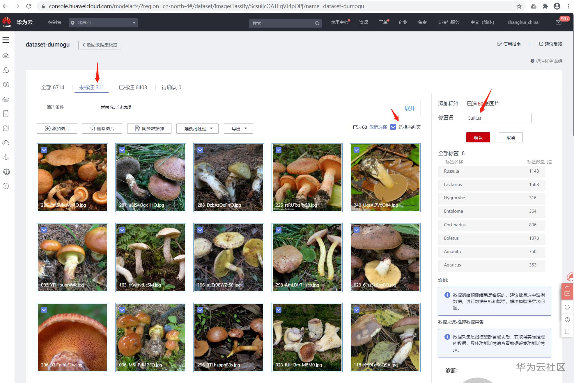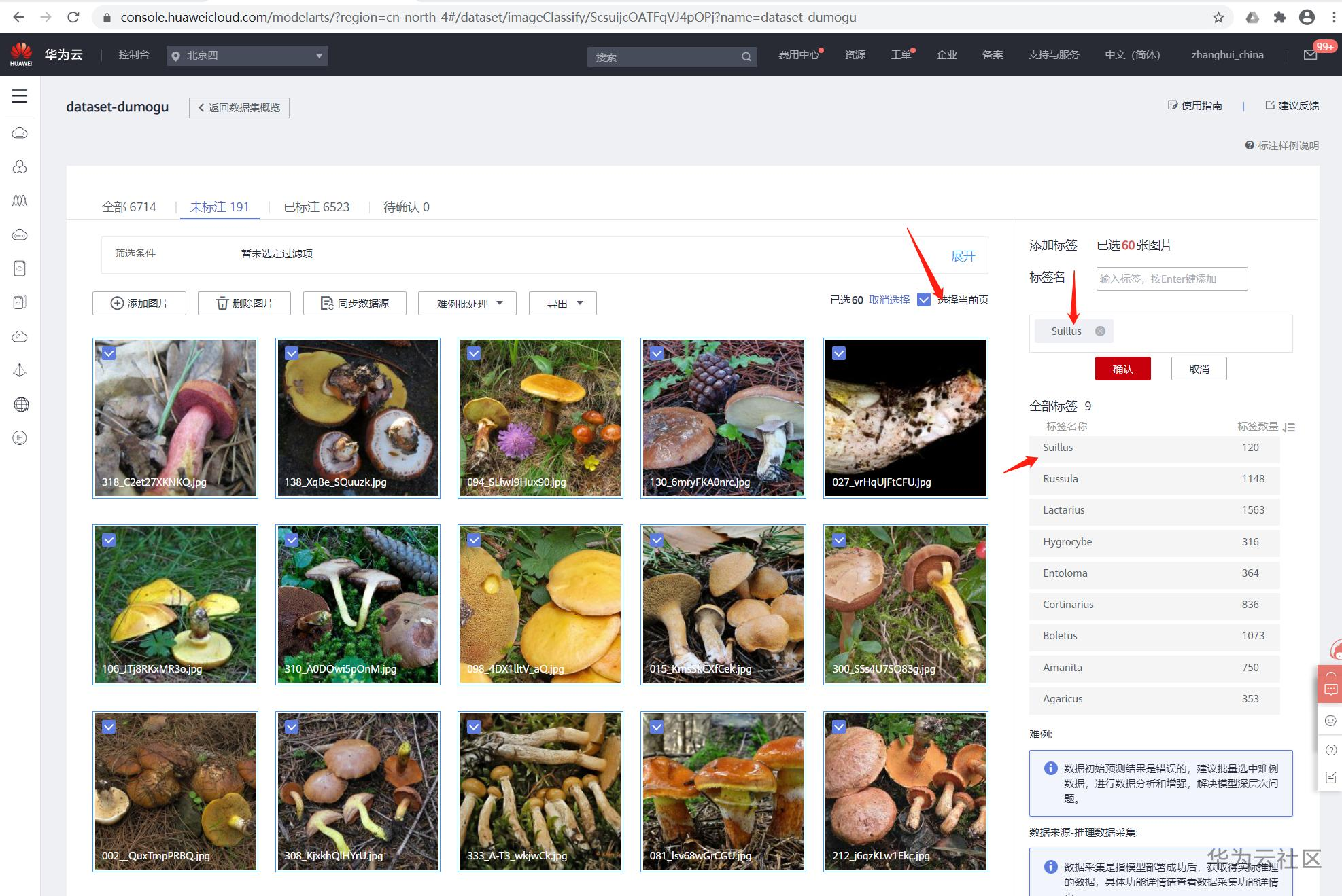 并在标签名中输入这类未标注的图片的标签,如Suillus,点击确认。