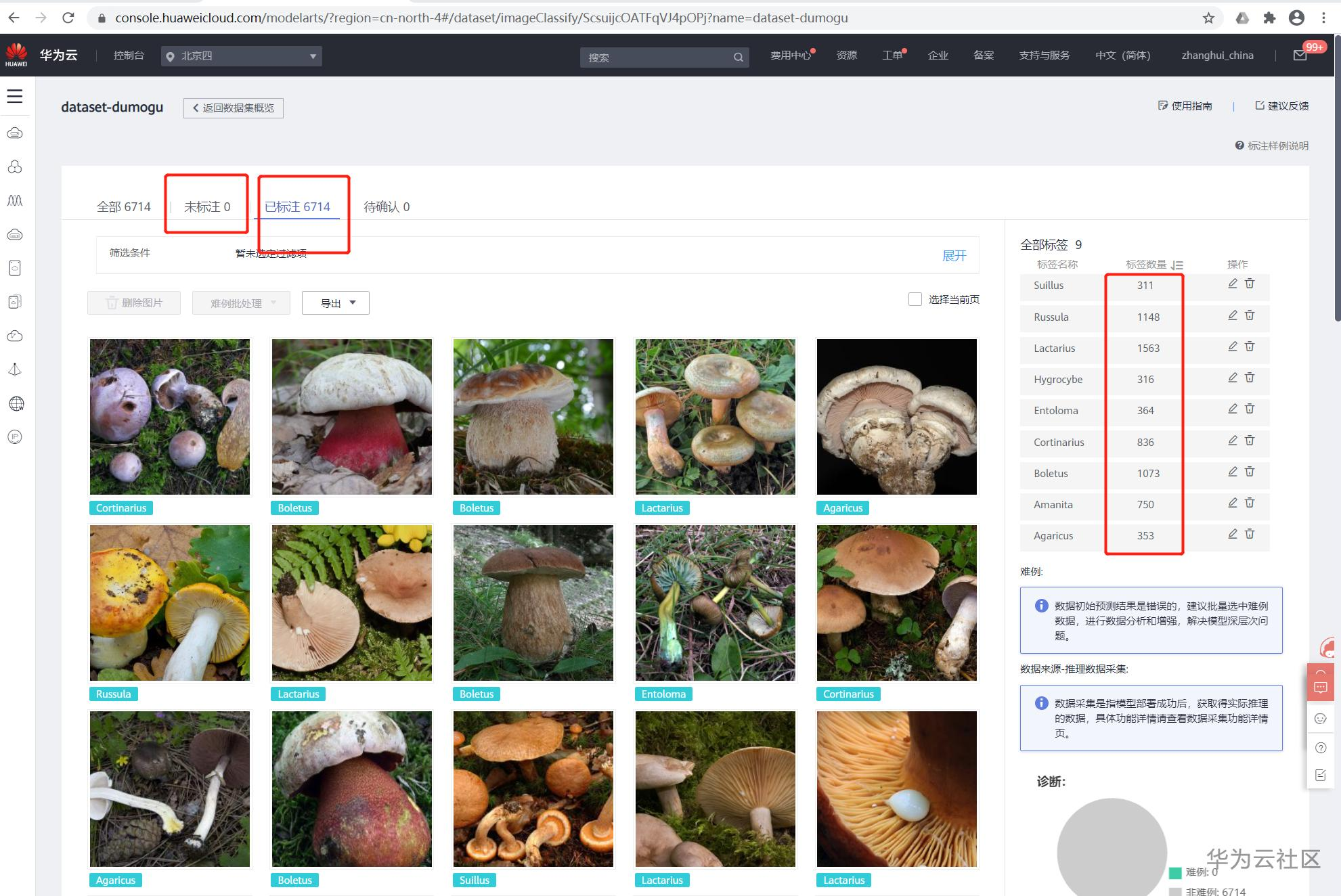 可看到未标注的数量在减少,而已标注为Suillus的图片数量在增加: