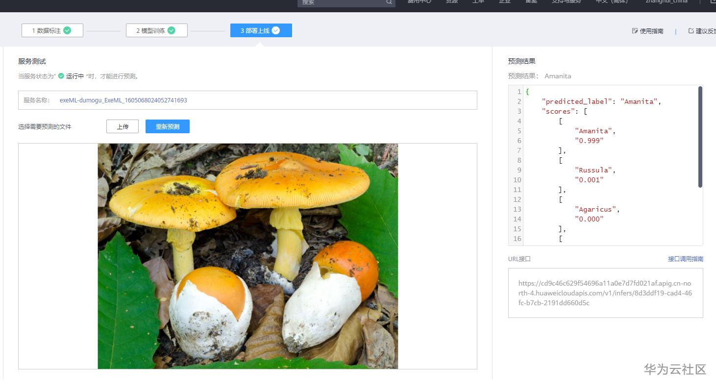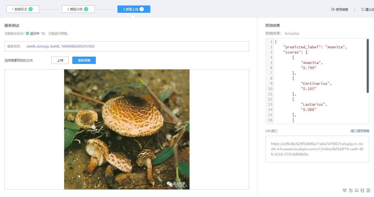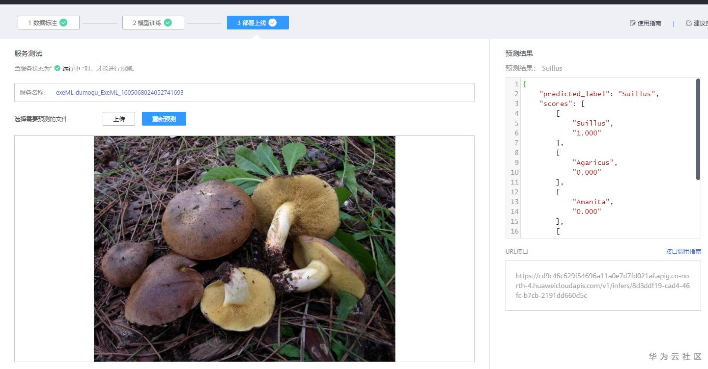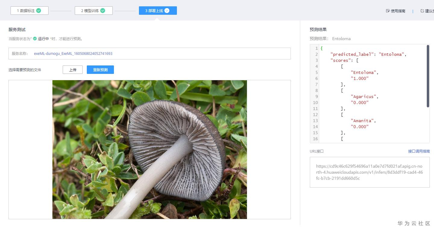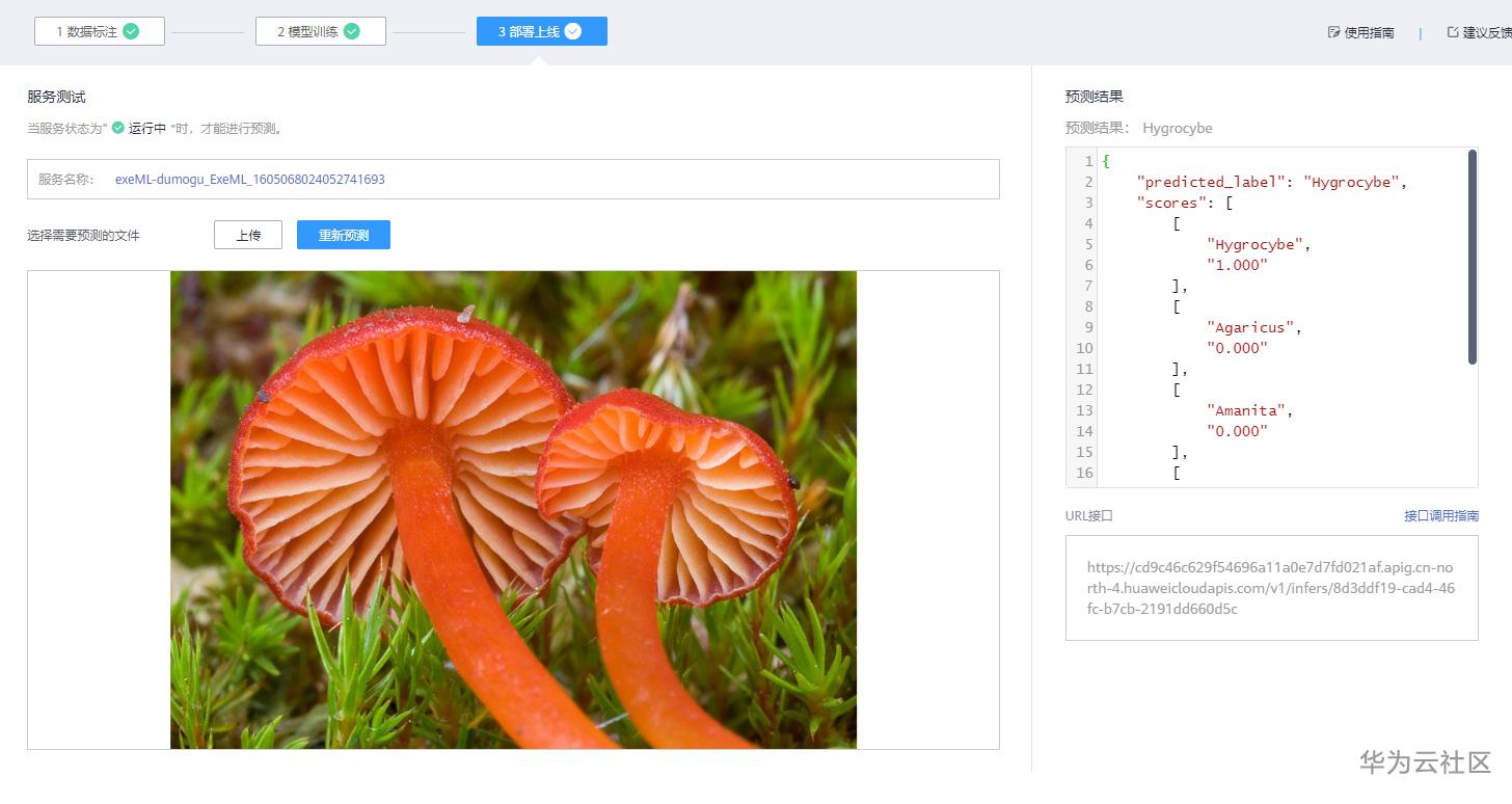(5)测试已部署上线的服务,进行蘑菇图片的推理。