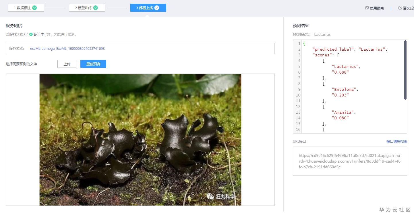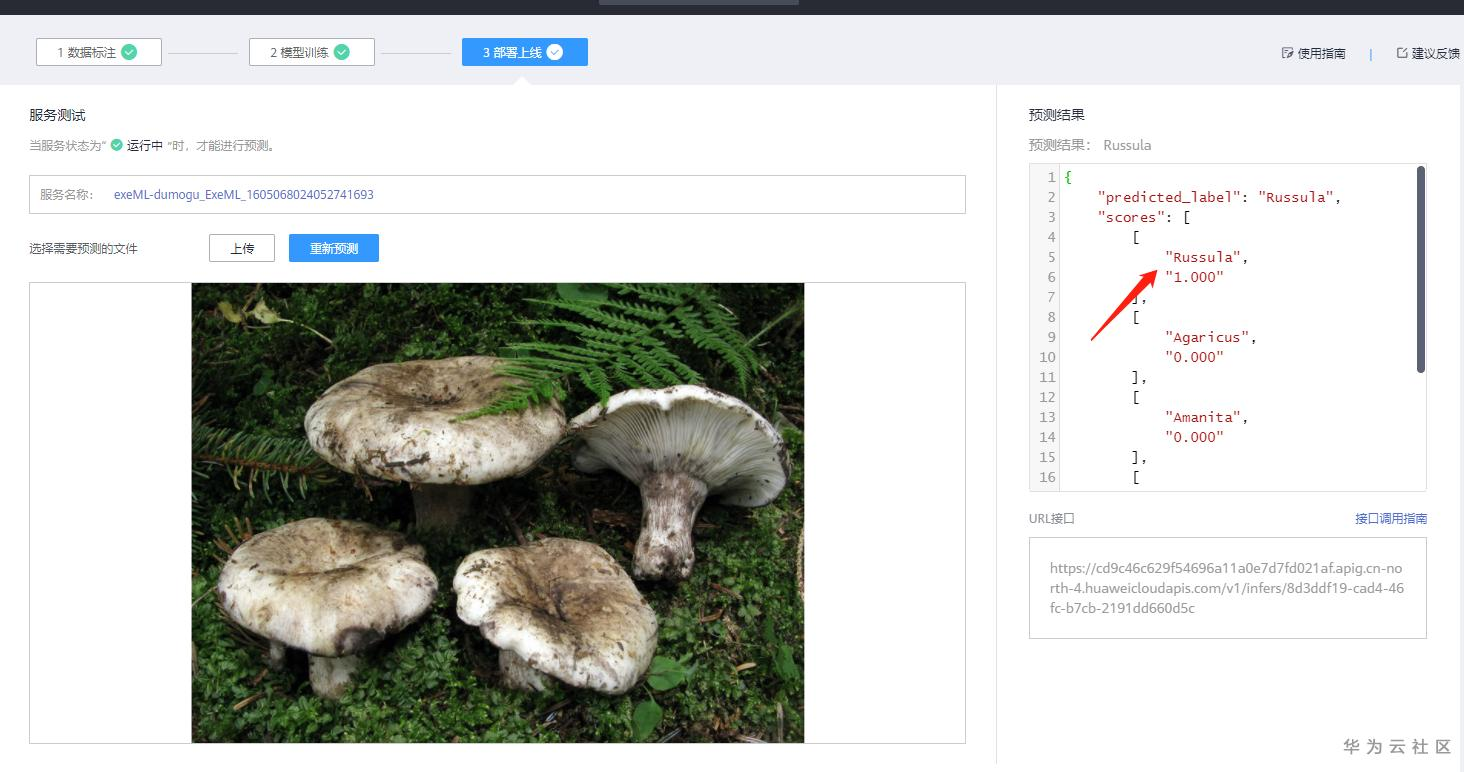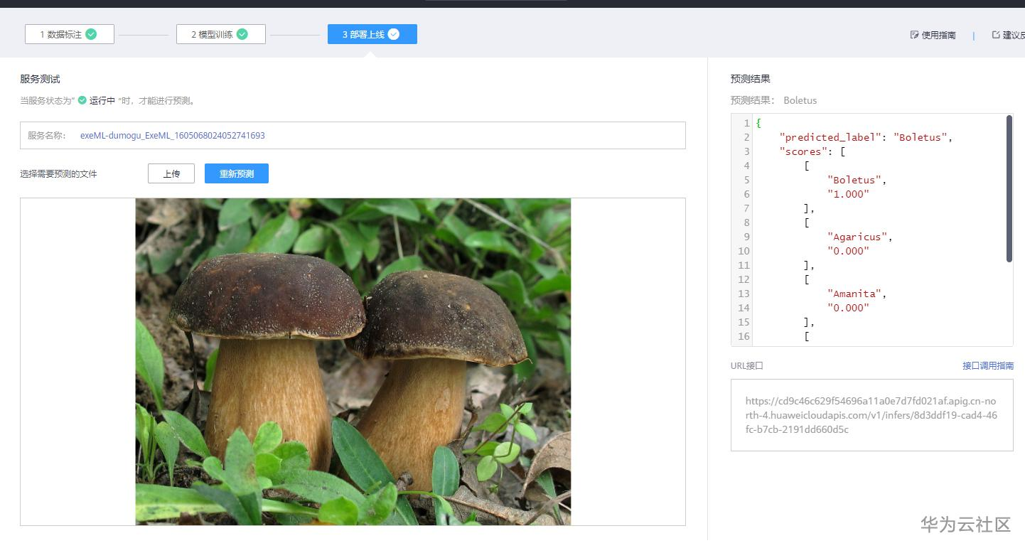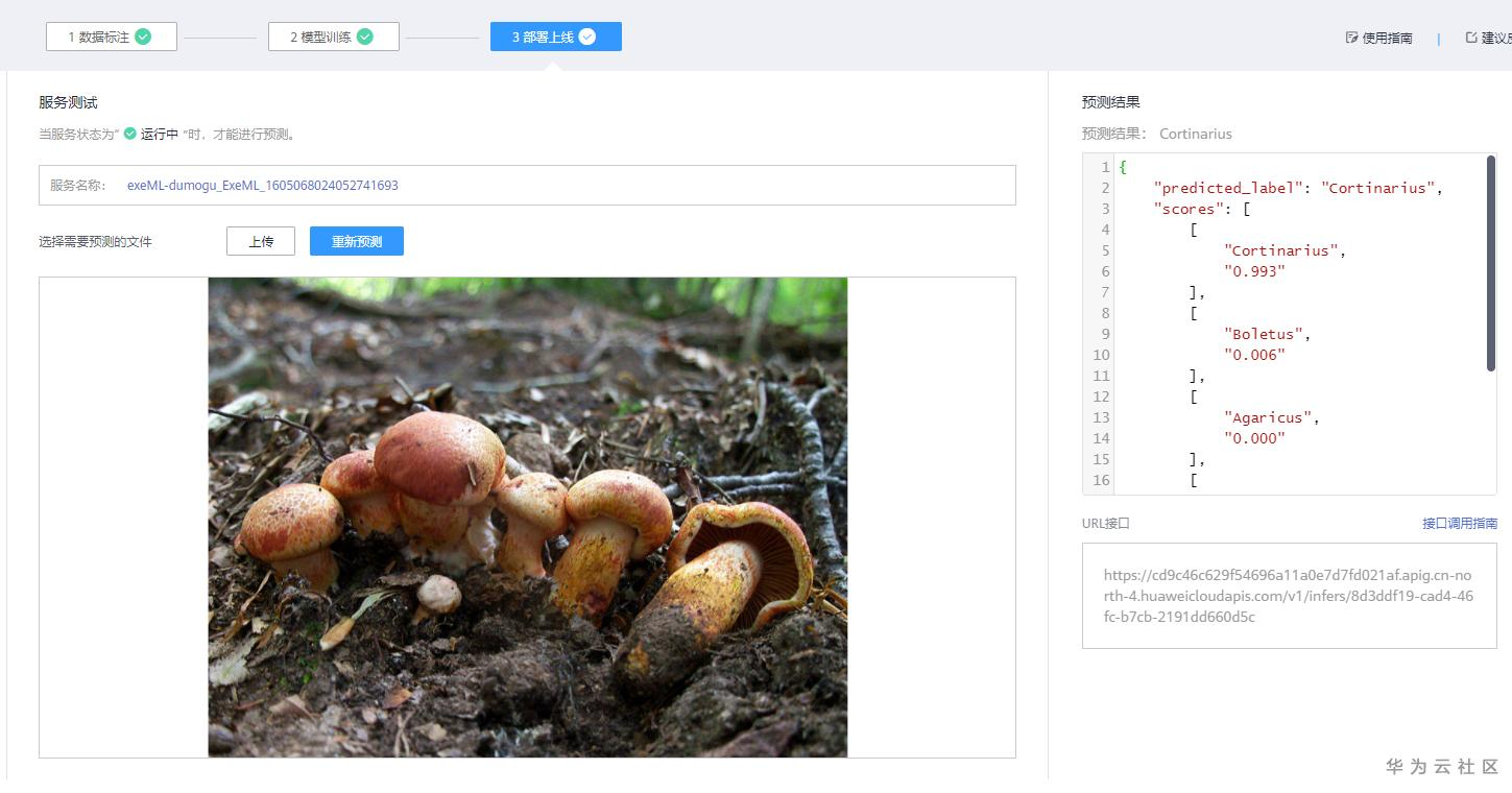 (5)测试已部署上线的服务,进行蘑菇图片的推理。