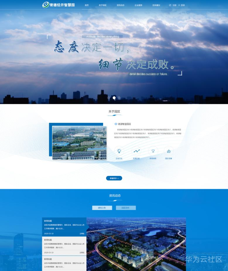 5.服务门户:园区通过门户发布中最新动态,招商信息。意向企业可通过门户进行入驻申请,查看自己房屋租赁的信息及缴费信息。