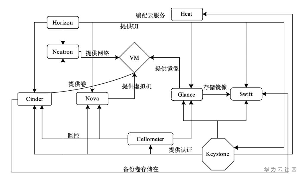 OpenStack的各个服务之间通过统一的REST风格的API调用,实现系统的松耦合。它的内部组件的工作过程是一个有序的整体。