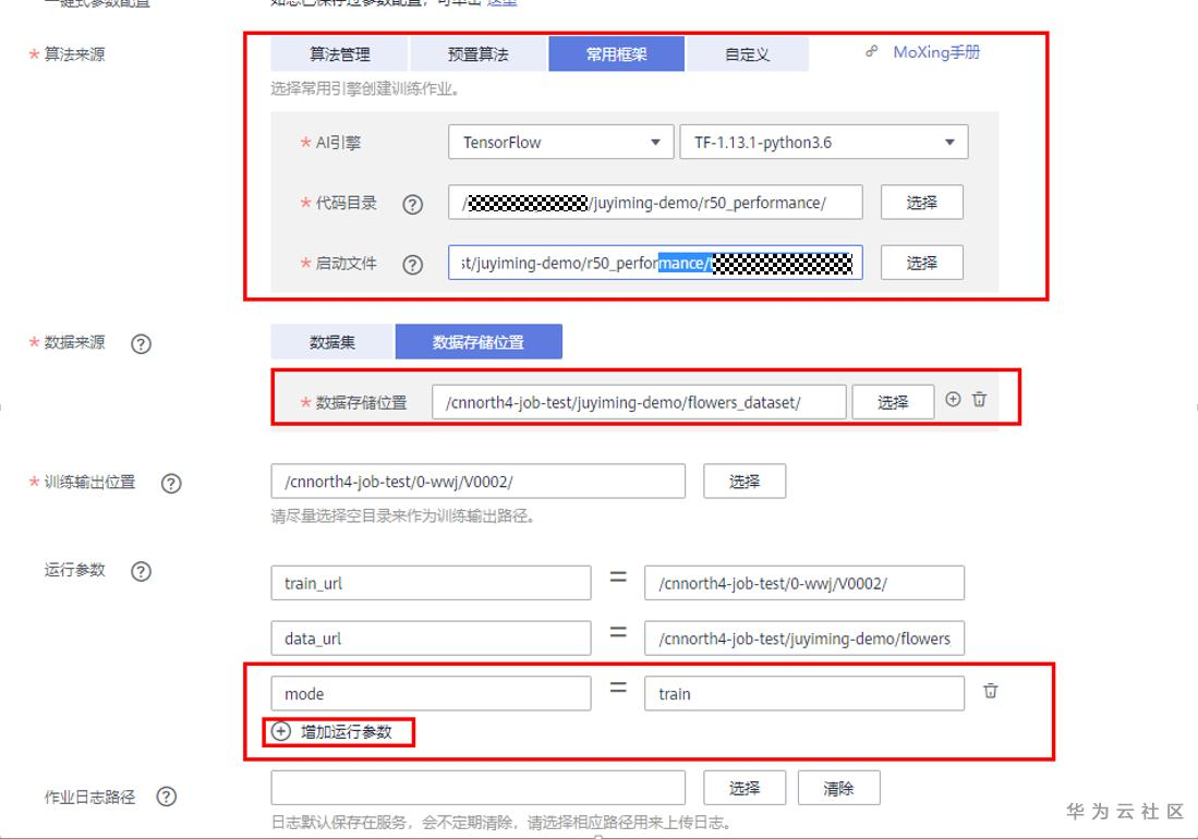 训练作业进行如下配置,