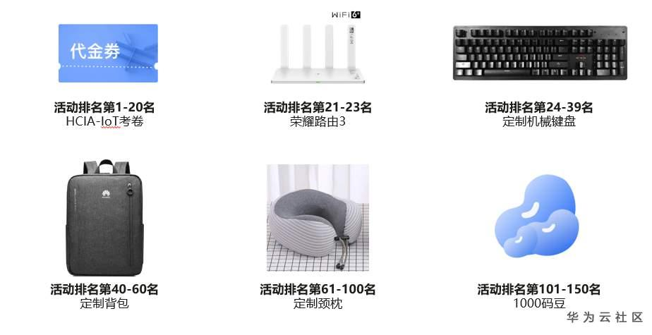 | 3 | 问答官排位赛 | 任务完成方式:用户可在相关活动帖中发布自己学习物联网技术中的疑惑或实践问题,其他用户可参与回答。由专家评审,同一问题下确定一名最佳答案。回复格式:华为云ID+提问的问题/解答答案 | 10积分/每个问题 5积分/每个解答 |