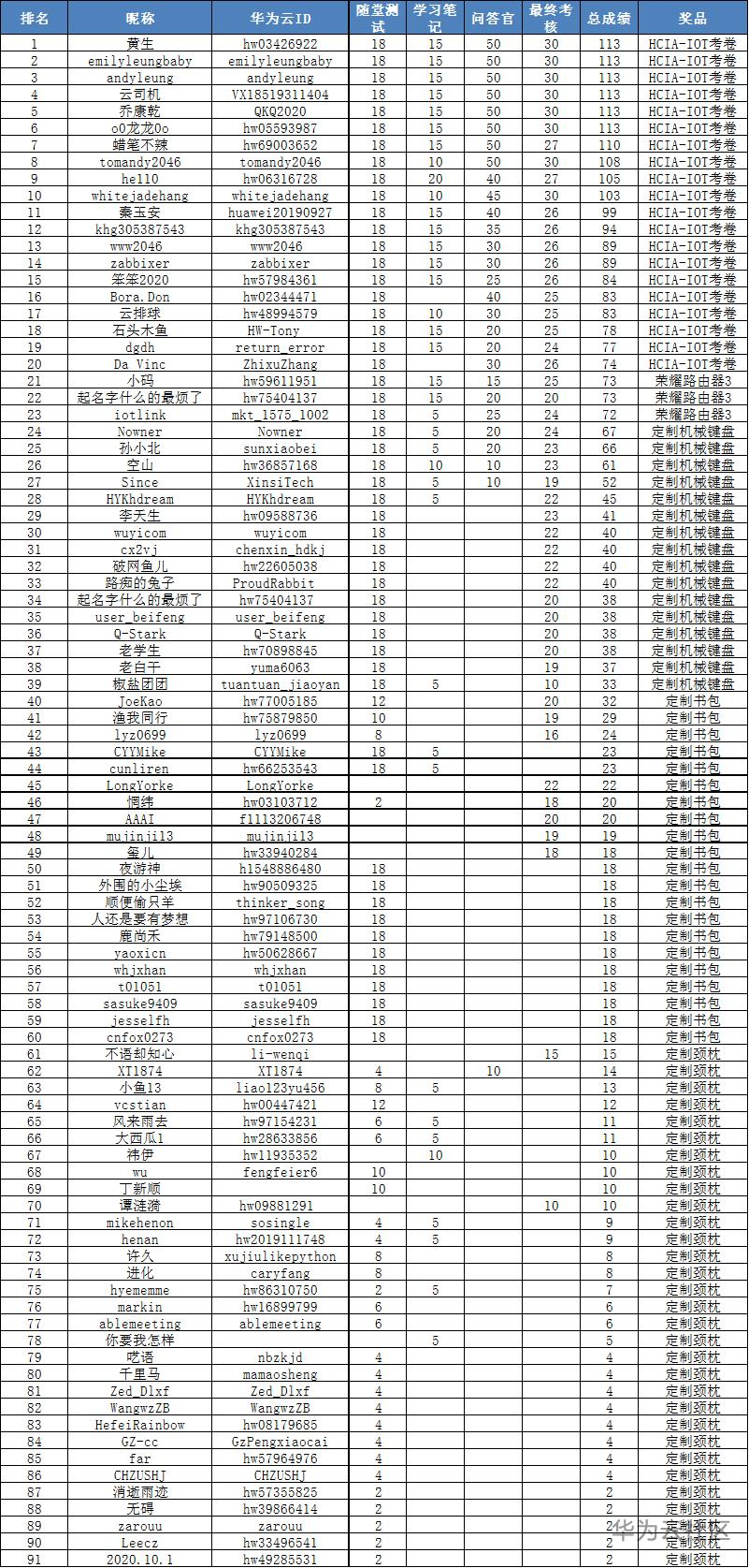 【IoT物联网开发全栈成长计划·第二阶段】最终积分排行榜成绩出炉!