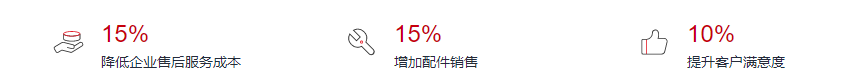 3、客户满意度提升:利用物联网IOT+售后服务工单派单+配件管理的方式,大大提高售后服务质量和效率,从而也提升了客户满意度10%以上;
