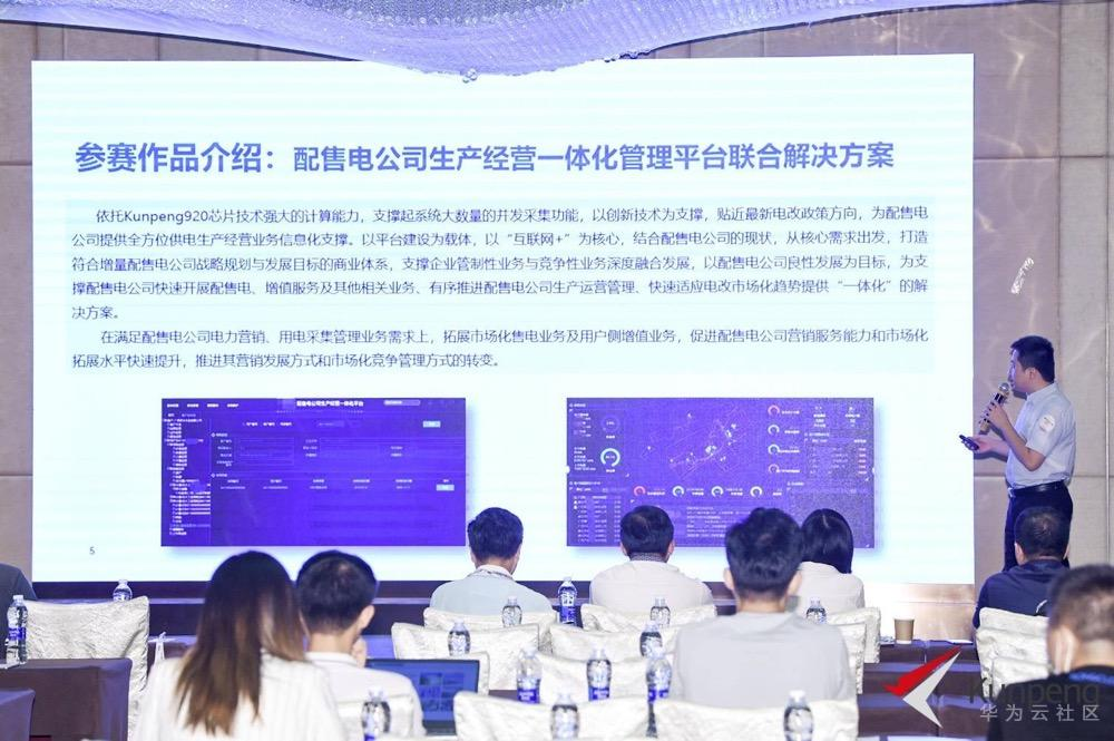 配售电公司生产经营方案的项目宣讲人介绍:在技术方面,平台采用自主研发和开源产品的构建方式,支持华为云计算业务部署,有效降低了软件采购和机房建设成本,另一方面基于鲲鹏计算平台的海量数据采集,依托鲲鹏 920 芯片计算能力,针对终端层,包括配电设备、发电设备、用电设备实现了分布式设备上运算密集型实时预算,相对传统计算架构,内存带宽提升 28%。基于鲲鹏服务器通过多核算力,精确算费性能提升 30%。在业务层面,产品实现了从购电、售电到结算管理整个电力交易服务的支撑;以及包括基于大数据电能质量、安全用电、能效分析、智能感知预警、经济用电用户侧增值服务;基于园区的构成协同,运行控制,以及智能运维提供综合的能源服务。
