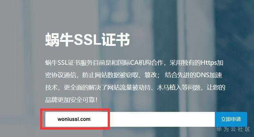 第二步、填入需要申请证书的域名,点击右边“立即申请”按钮!(请按照下方截图中域名格式填写)
