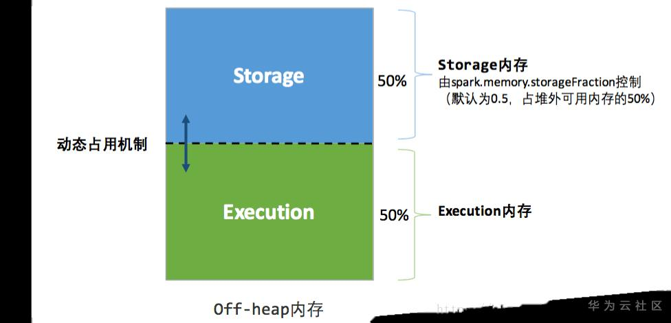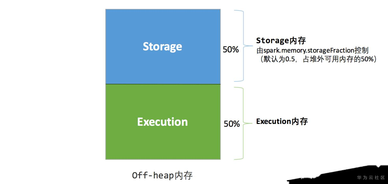 为了进一步优化内存的使用以及提高Shuffle时排序的效率,Spark引入了堆外(Off-heap)内存,使之可以直接在工作节点的系统内存中开辟空间,存储经过序列化的二进制数据.spark在默认情况下堆外内存并不启用,可通过配置spark.memory.offHeap.enabled=true参数启用,并由spark.memory.offHeap.size参数设定堆外空间的大小,然后可以按照下图中的比例进行内存的计算