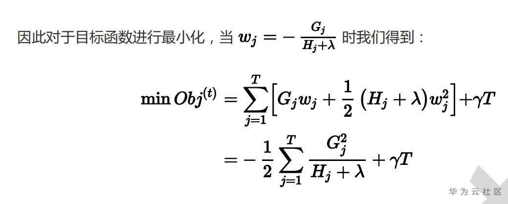 至此,对于第 t 轮的一颗已经分裂好的决策树,我们能够求出其对应的最小化的目标函数