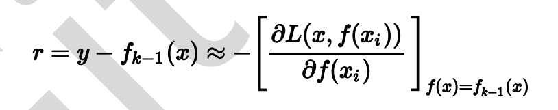 法主要的区别就是利用损失函数的负梯度在当前模型的值作为回归问题提升树算法中残差的近似值,来拟合一颗回归树,即: