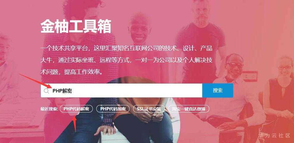 第二步:在网站首页输入框,输入“PHP解密”。点击搜索。