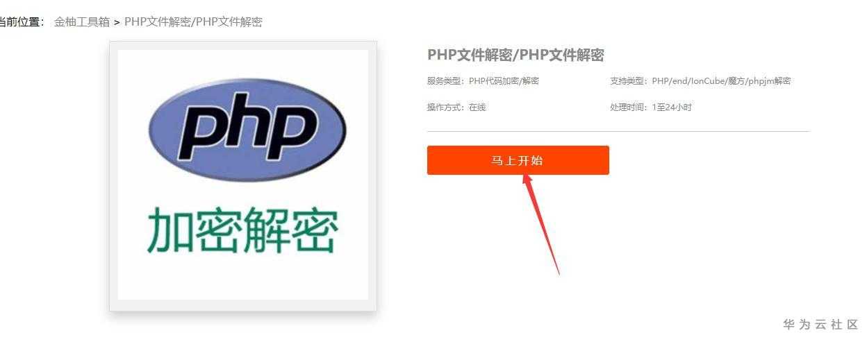 【摘要】 如今建站PHP已是主流,但许多PHP网站程序都会有加密的情况,无法查看源代码,如果想查看,只能进行PHP解密,网上也有不少解密的工具,今天给大家介绍一款比较靠谱的PHP文件代码解密平台。第一步:百度搜索“金柚工具箱”或直接打:https://www.jinyoutool.com第二步:在网站首页输入框,输入“PHP解密”。点击搜索。第三步:打开了解密服务页面,点击“马上开始”按钮,然后选择适...