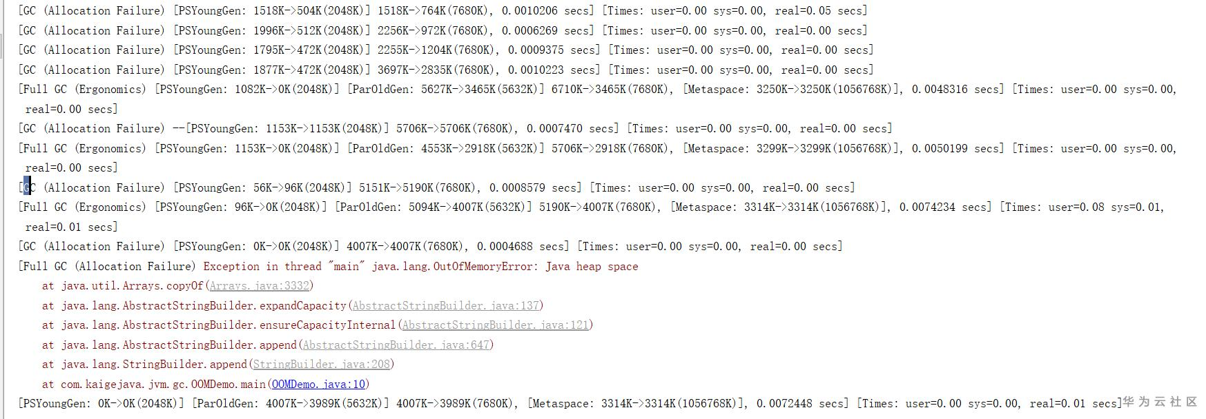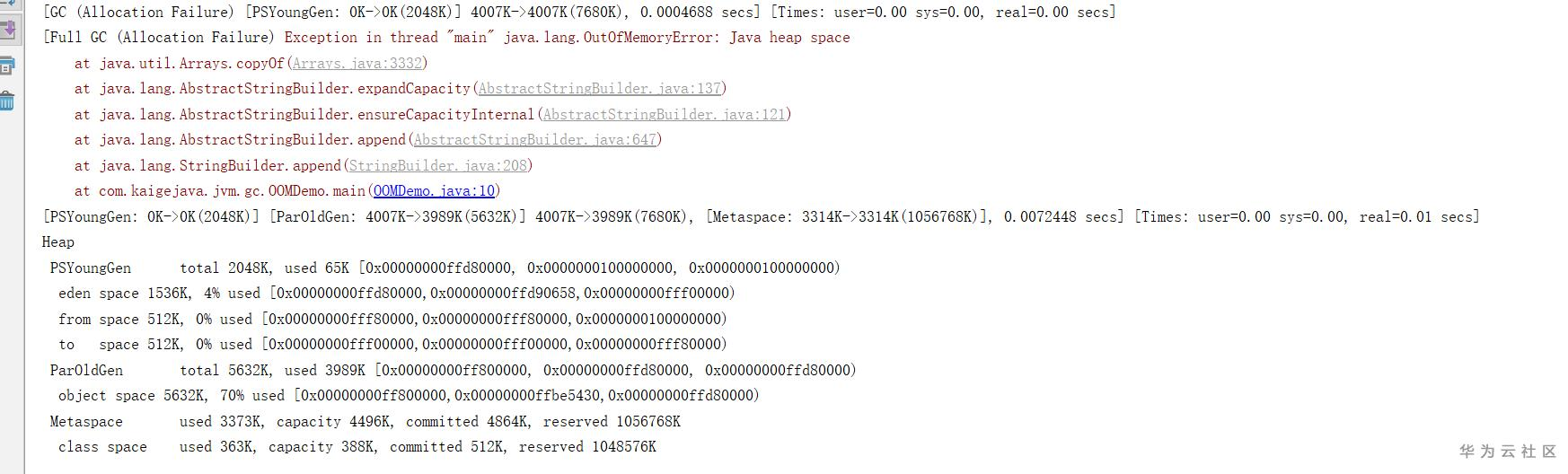 先来看看,OOM后,GC详细日志信息:
