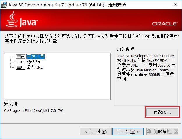 6)jdk安装结束后,继续安装jre。单击“更改”按钮。