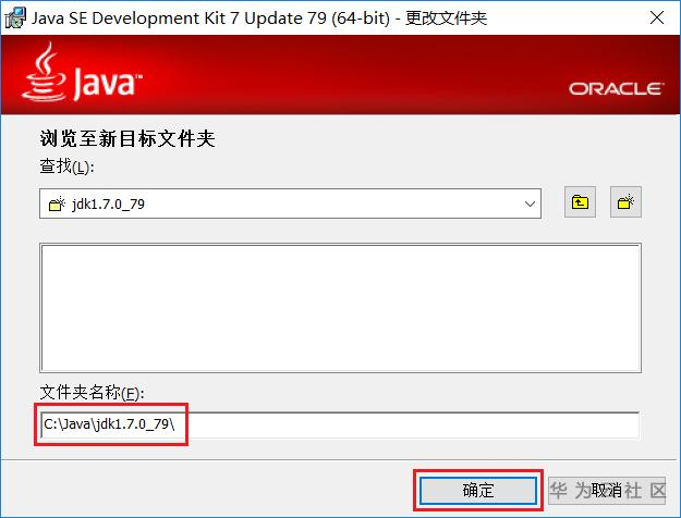 3)修改默认的安装路径为“C:\Java\jdk1.7.0_79\”,单击“确定”按钮。