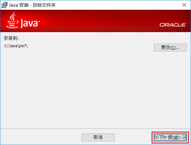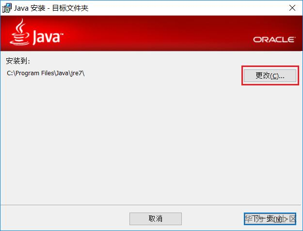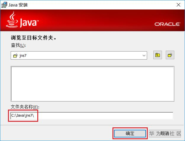 7)修改默认的安装路径为“C:\Java\jre7\”,单击“确定”按钮。