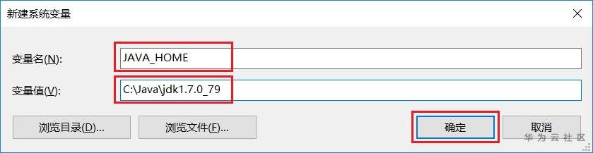 5)变量名为:“JAVA_HOME”,变量值为“C:\Java\jdk1.7.0_79”。单击“确定”按钮完成“JAVA_HOME”的配置。
