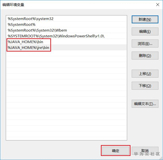 8)新建输入“%JAVA_HOME%\bin”和“%JAVA_HOME%\jre\bin”。或者单击“编辑文件”按钮,在变量值的末尾直接输入“;%JAVA_HOME%\bin;%JAVA_HOME%\jre\bin”。