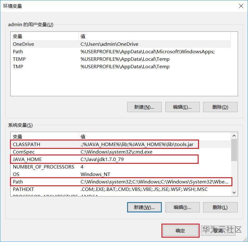 10)配置完成后,分别单击“确定”按钮退出系统变量的配置。