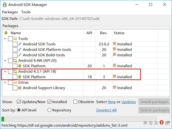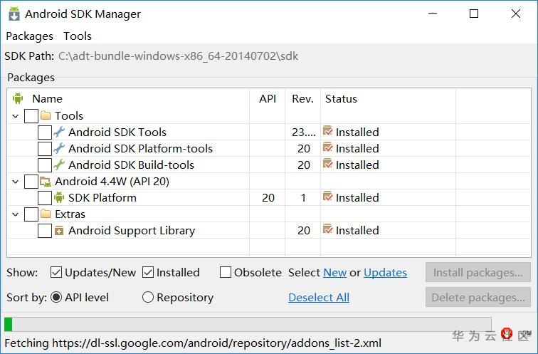 7、双击“C:\adt-bundle-windows-x86_64-20140702”目录下“SDK Manager”,查看更新。
