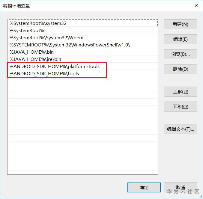 3、编辑修改系统变量中的“Path”。新建“%ANDROID_SDK_HOME%\platform-tools”和“%ANDROID_SDK_HOME%\tools”。或直接单击“编辑文本”按钮,在末尾添加“;%ANDROID_SDK_HOME%\platform-tools;%ANDROID_SDK_HOME%\tools”。