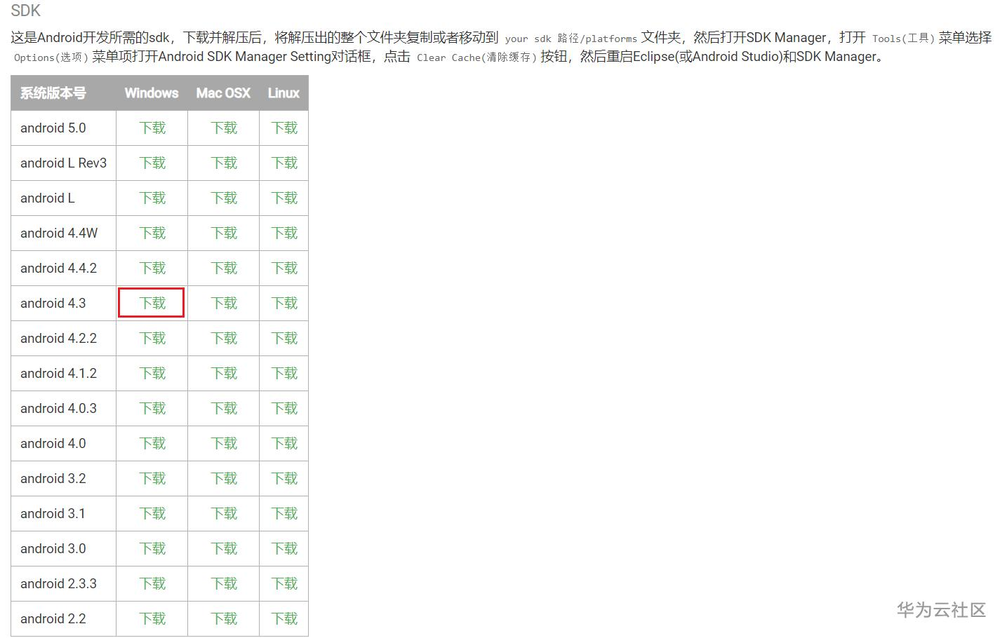 5、访问https://www.androiddevtools.cn/。下载android 4.3版本的SDK。下载链接:https://pan.baidu.com/s/1KkQBYFHXNqx7XkER9GKMog 提取码:4318 。