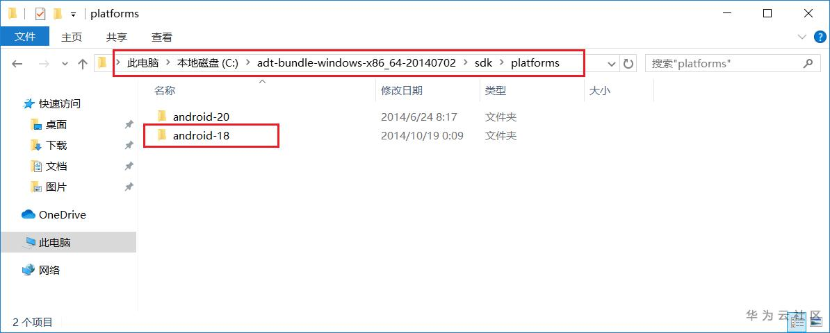 6、下载解压压缩包后,将解压出的“android-18”整个文件夹移动到“C:\adt-bundle-windows-x86_64-20140702\sdk\platforms”文件夹中。