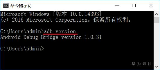 4、在命令提示符中运行“adb version”,结果显示“Android Debug Bridge version 1.0.31”,则安装成功。