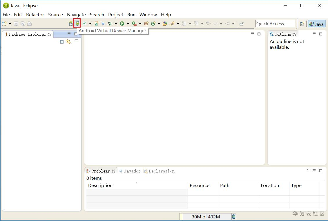 8、运行eclipse,单击“Android Virtual Device Manager”。