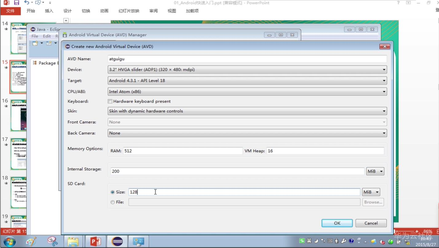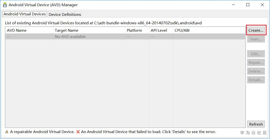 14、重复以上的步骤8-10。创建Android Virtual Device。