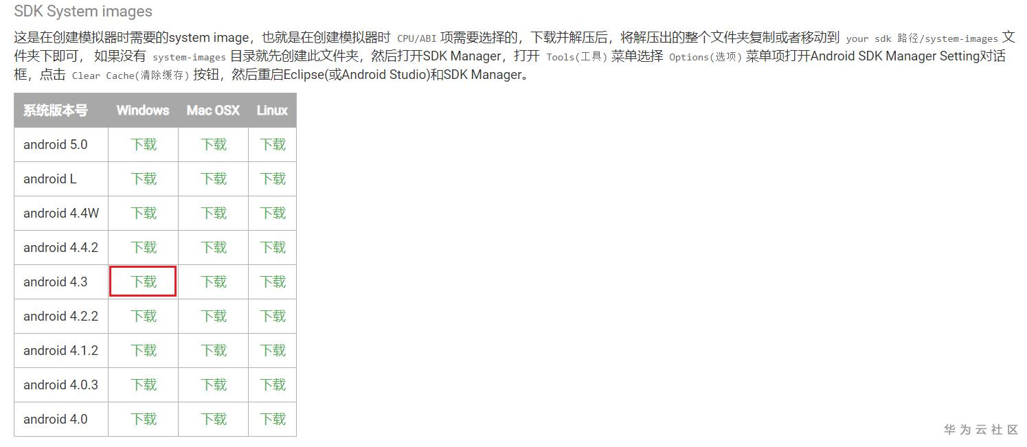 11、访问https://www.androiddevtools.cn/。下载android 4.3版本的SDK System images。下载链接:https://pan.baidu.com/s/1NC3vCjBlr4gtJK4gQ9F5fQ 提取码:3sdk 。