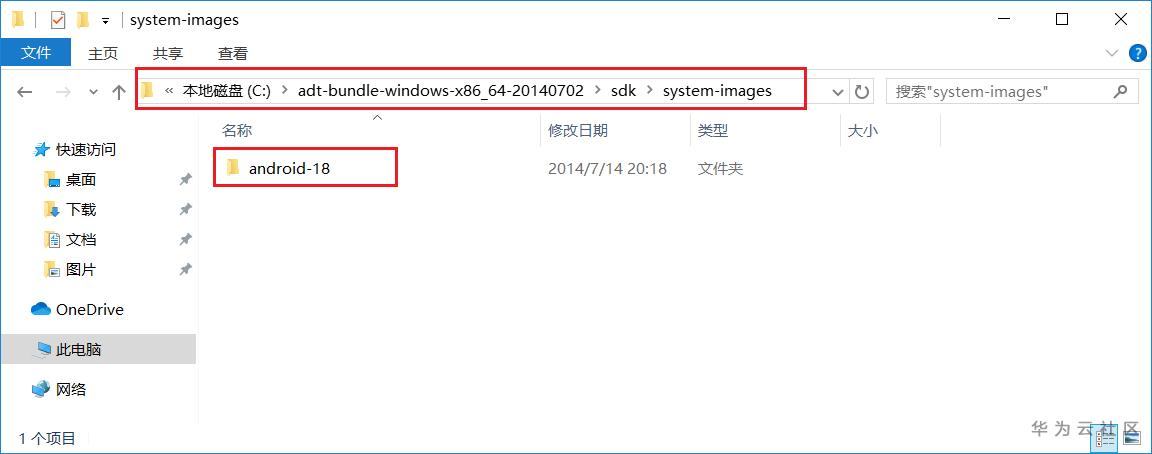 13、下载解压压缩包后,将解压出的“android-18”整个文件夹移动到“C:\adt-bundle-windows-x86_64-20140702\sdk\system-images”文件夹中。