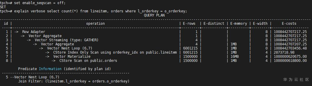 lineitem分布键是l_orderkey,并且在l_orderkey上有index,orders分布键是o_orderkey。默认情况下,Scan的方式如下: