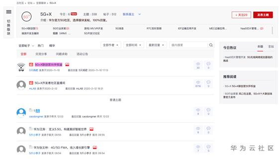 此外,5G+X联创营专区还设有论坛,5G、云计算、AI 领域的技术大咖、开发者都能在此发布帖子,讨论创新场景、发布问题和需求。你的问题将获得志同道合的小伙伴们的解答,同时也将沉淀下来给更多和你有一样问题的人参考。